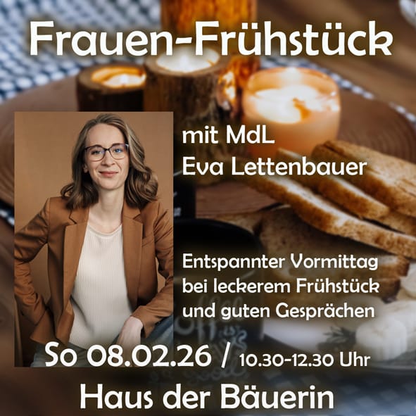 am 08. Februar laden wir Sie gemeinsam mit dem Ortsverband Hirschaid herzlich zum Frauenfrühstück mit unserer GRÜNEN Landesvorsitzenden Eva Lettenbauer um 10:30 Uhr im Haus der Bäuerin ein.