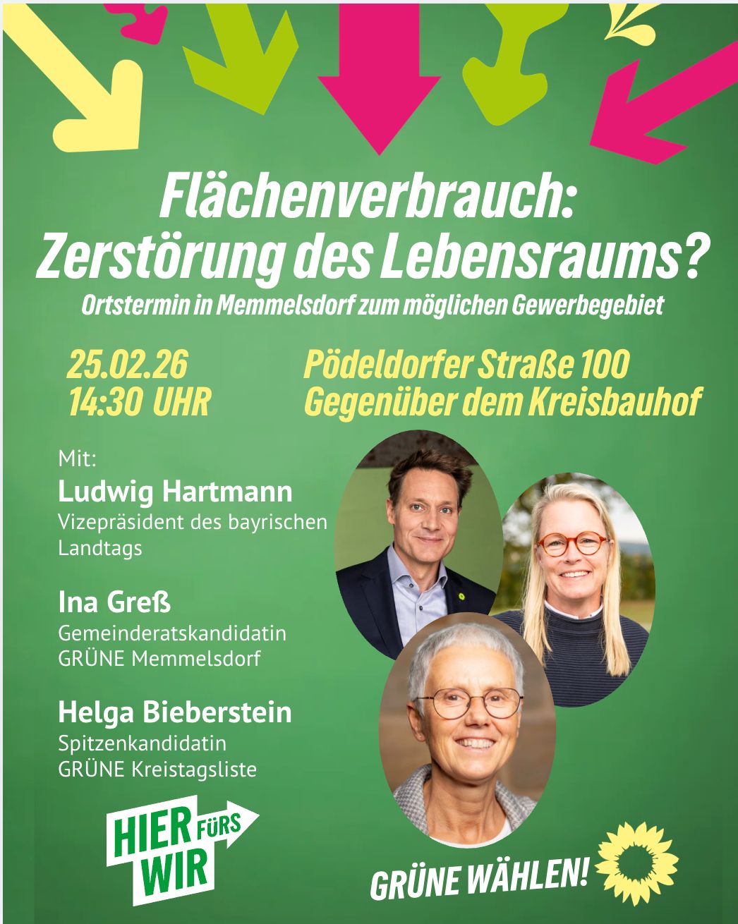 Am Mittwoch, 25. Februar, um 14:30 Uhr besichtigen und diskutieren wir das potentielle Gewerbegebiet zw. Pödeldorf und Memmelsdorf mit Ludwig Hartmann, MdL und Vizepräsident des bayerischen Landtages. Kommen Sie gerne vorbei!